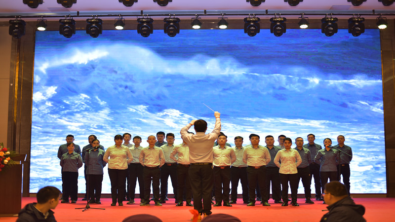 時間來到1630分,在一首熱血、激情、力量的大合唱下,正式拉開大會的序幕。這首歌曲就像是激人奮進的“前進號角”,鼓舞、激勵著所有的特力人不負青春、不負年華,為了心中的夢想奮楫爭流,破浪前行。